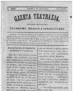 Founded in 1988 by a group of Polish theatre enthusiasts, Gazeta Teatralna has established itself as a prominent cultural newspaper in Warsaw, Masovian, Poland. Originally created to fill the gap in reporting on theatrical arts, it has evolved into a vital source of information, offering reviews, interviews, and analyses of both local and international performances. On OldNews.com, you will find scans of Gazeta Teatralna starting 1843, including 558 scans in total. This accessible archive allows readers to delve into the insightful commentary that has shaped public discourse and fostered appreciation for Poland's vibrant cultural scene, while also connecting to historical figures and events, as well as personal family histories. Gazeta Teatralna's reputation as a trusted resource among artists, scholars, and theatre aficionados makes this collection an invaluable opportunity for anyone interested in the performing arts and their impact on culture.