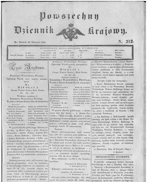 Powszechny Dziennik Krajowy, founded in 1944 by a group of Polish journalists in Warsaw, has emerged as a pivotal publication in the Masovian region. Initially aimed at addressing the socio-political landscape post-World War II, this newspaper has evolved to cover a broad spectrum of topics, including national and local news, cultural events, and opinion pieces. Renowned for its investigative journalism and commitment to accuracy, Powszechny Dziennik Krajowy has cultivated a reputation as a trusted source of information among readers. Now, you can explore a collection of scans from Powszechny Dziennik Krajowy on OldNews.com, starting 1829, with 3,768 scans in total. Discover the stories, historical figures, events, and possibly connections to your own family history that have shaped Polish society. Take the opportunity to delve into the past and uncover the impactful narratives within this significant publication.