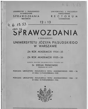 Sprawozdanie Z Działalności Uniwersytetu Józefa Piłsudskiego W Warszawie Za Rok Akademicki is an annual report that provides valuable insight into the university's activities and achievements since its founding in 1996. This vital communication tool offers detailed analyses of academic programs, research initiatives, and student engagement, reflecting the institution's commitment to excellence in education. Recognized for its thoroughness and objectivity, the report is a trustworthy source of information about university developments, highlighting its influence in Poland's academic landscape. On OldNews.com, you can find scans of Sprawozdanie Z Działalności Uniwersytetu Józefa Piłsudskiego W Warszawie Za Rok Akademicki, Warsaw, Masovian, Poland starting 1936, including 100 scans in total. Delve into the past to discover historical figures, events, and connections to your own family history. Explore these archives and learn more about the university's impact and the broader educational framework.