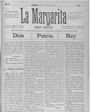 La Margarita, founded in 1984 by journalists José María García and Ana Beltrán in Orihuela, Valencia, has become a vital voice in local journalism. Celebrated for its commitment to community reporting, the newspaper covers a wide range of topics such as politics, culture, and local events, providing in-depth analyses and interviews that resonate deeply with residents. On OldNews.com, you would find scans of La Margarita, Orihuela, Valencia, Spain starting 1893, including 112 scans in total. This is a fantastic opportunity to uncover historical figures, events, and even stories related to your own family history. With the newspaper’s integrity and reliability, La Margarita has garnered a loyal readership, making it an influential source of information in the region. Explore these archives to connect with your past and experience the trusted journalism that solidified La Margarita's reputation in Valencia.
