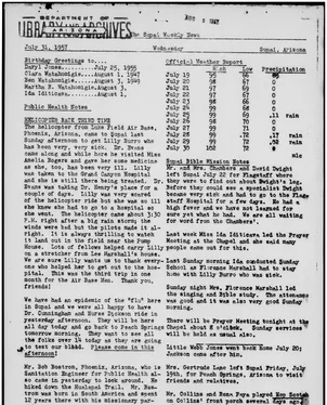 The Supai Weekly News, established in 1952 by the Havasupai Tribe, serves as a vital communication tool for the community in Supai, Arizona. Celebrated for chronicling local events and issues, the newspaper has achieved significant milestones, including its transition to a digital format that expanded its reach. The content encompasses community news, cultural stories, and updates on local governance, reflecting the values and traditions of the Havasupai people. On OldNews.com, you can find scans of The Supai Weekly News starting 1957, including 212 scans in total. This resource offers a rich historical perspective, featuring mentions of historical figures and events, as well as the possibility of uncovering stories from your own family history. With its reputation for trustworthiness and cultural relevance, The Supai Weekly News remains an influential source, fostering a sense of community among its readers. Explore these archives to connect with the past and discover the stories that shaped the Havasupai community.