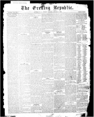 The Evening Republic, founded in 1885 by local journalists in Buffalo, New York, has a rich history as a prominent regional newspaper, celebrated for its comprehensive coverage of local events, politics, and culture. On OldNews.com, you would find scans of The Evening Republic starting 1876, with 7,350 scans in total, allowing you to explore the milestones of innovative reporting techniques and community engagement initiatives that solidified its reputation. The newspaper offers a diverse array of content, including news articles, editorials, and features addressing local and national issues. As a trusted source committed to journalistic integrity and informed civic discourse, The Evening Republic invites you to discover historical figures, events, and perhaps connections to your own family history. Dive into the archives on OldNews.com to uncover the stories that shaped your community and beyond.