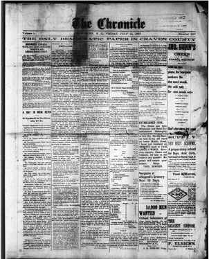 Founded in 1820 by William H. McBain, The Chronicle in New Bern, North Carolina, is one of the state's oldest newspapers, playing a pivotal role in the community’s information landscape. Over its long history, it has evolved to include comprehensive coverage of local news, politics, and events, along with opinion pieces, sports, and business reports. On OldNews.com, you would find scans of The Chronicle, New Bern, North Carolina, United States starting 1897, including 8 scans in total. The Chronicle is known for its commitment to journalistic integrity and community engagement, making it a trusted source for residents. With a reputation for accuracy and depth, it has become an influential platform, fostering public discourse and reflecting the vibrant life of New Bern and its surroundings. Explore these archives to uncover historical figures, events, and perhaps stories from your own family history that are woven into the fabric of this enduring community.