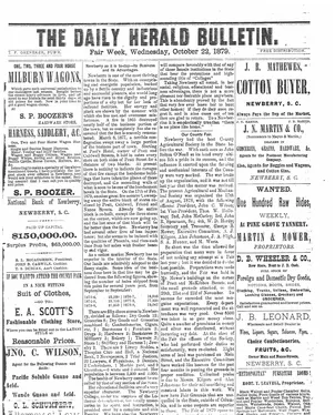 The Daily Herald Bulletin, founded in 1871 by local enterprisers in Newberry, South Carolina, boasts a rich history of community journalism with notable milestones, including award-winning reporting and comprehensive coverage of local events. Initially a weekly publication, it transitioned to a daily format to meet the growing demand for timely news. Renowned for its journalistic integrity, the newspaper provides diverse content, including local news, features, sports, and opinion pieces, making it a trusted source in the region. On OldNews.com, you will find scans of The Daily Herald Bulletin from Newberry, South Carolina, United States starting 1879, including 24 scans in total. This platform offers a unique opportunity to explore historical figures and events that may connect to your own family history. Dive into the archives and discover the stories that shaped your community by searching for old newspapers today.